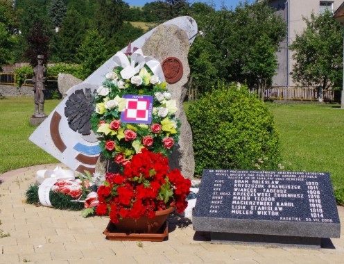 Pamätník v centre obce Radatice nám pripomína hrdinstvo 8 poľských príslušníkov letectva, ktorí pôsobili v službách britského kráľovského letectva a zahynuli v katastri obce Radatice. Ich lietadlo Handely Page Halifax Mk bolo 28. decembra 1944, nad Šarišskou vrchovinou, zostrelené pilotom nemeckej stíhačky JU 88G. Horiace padlo v zalesnenom teréne, na lúku pri vtedajšej obci Meretice, (dnes je to časť obce Radatice). Na mieste pádu lietadla bol v roku 2002 postavený drevený kríž. Telesné pozostatky pilotov boli uložené v Prahe na Olšanskom cintoríne.